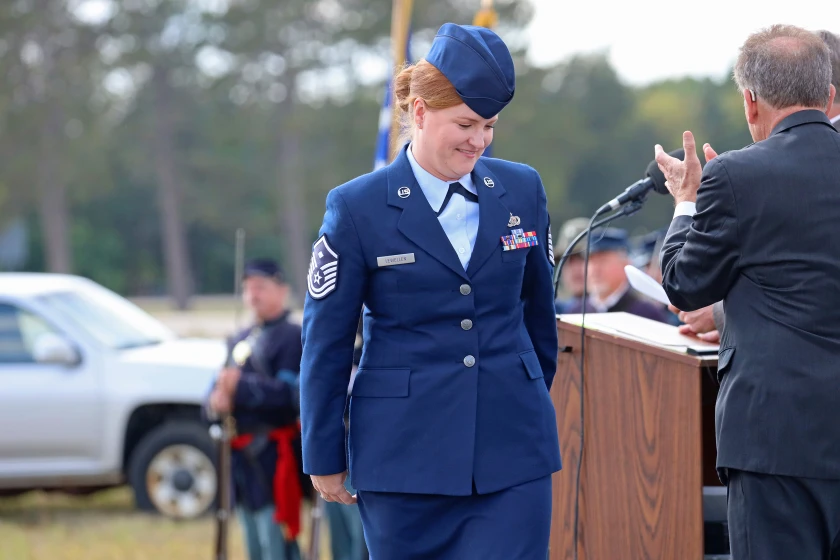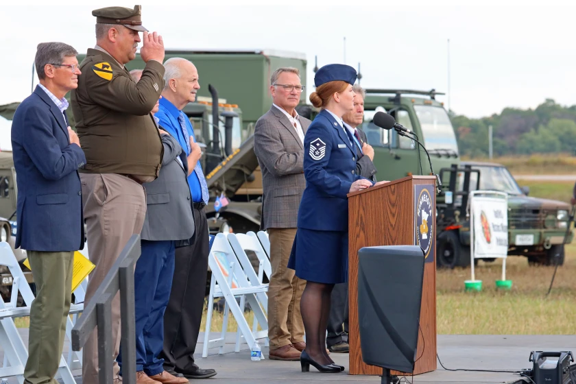 28/33: Master Sgt. Jessica Lewellen after singing God Bless America on Sunday, Sept. 17, 2023, for the Dedication and Ceremonial Groundbreaking for the Minnesota Military and Veterans Museum just outside Camp Ripley.
