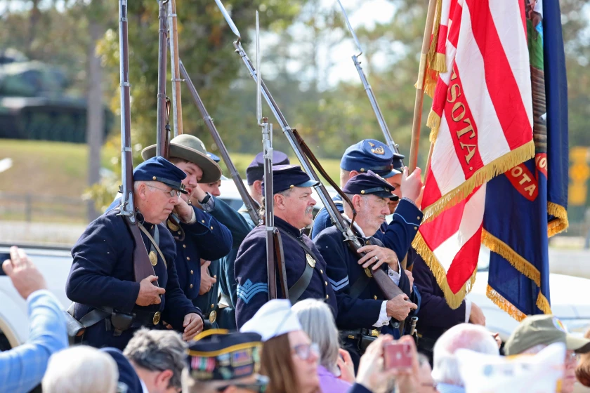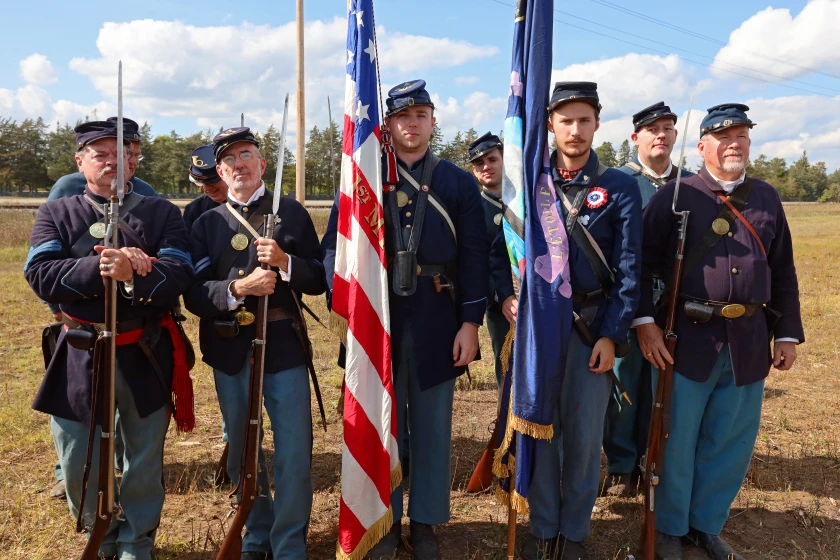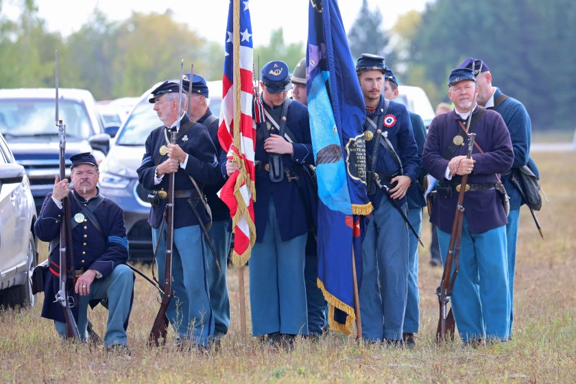 1/33: The First Minnesota Volunteer Infantry, Inc. makes their way to the stage area where the groundbreaking will take place Sunday, Sept. 17, 2023, for the Dedication and Ceremonial Groundbreaking for the Minnesota Military and Veterans Museum just outside Camp Ripley.