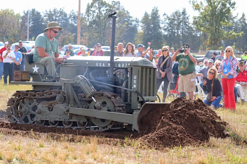 Andy Garding uses a 1944 Cletrac construction battalion bulldozer from World War II to break ground Sunday, Sept. 17, 2023, during the Dedication and Ceremonial Groundbreaking for the Minnesota Military and Veterans Museum just outside Camp Ripley. Construction of the 40,000-square-foot facility is expected to be completed in late 2025 with a grand opening in 2026.