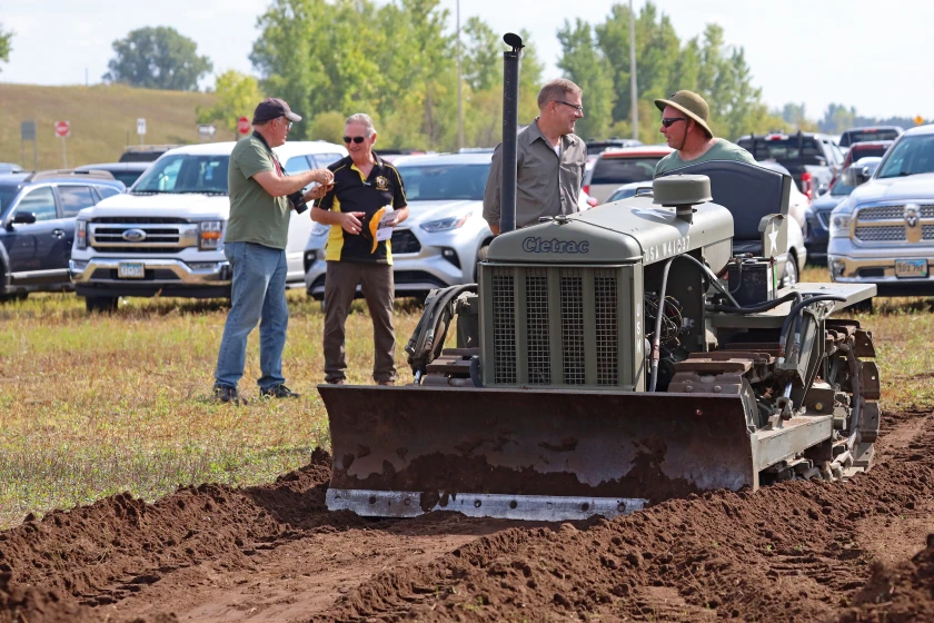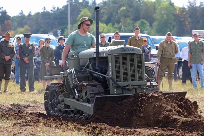33/33: Andy Garding uses a 1944 Cletrac construction battalion bulldozer from World War II to break ground Sunday, Sept. 17, 2023, during the Dedication and Ceremonial Groundbreaking for the Minnesota Military and Veterans Museum just outside Camp Ripley. Construction of the 40,000-square-foot facility is expected to be completed in late 2025 with a grand opening in 2026.