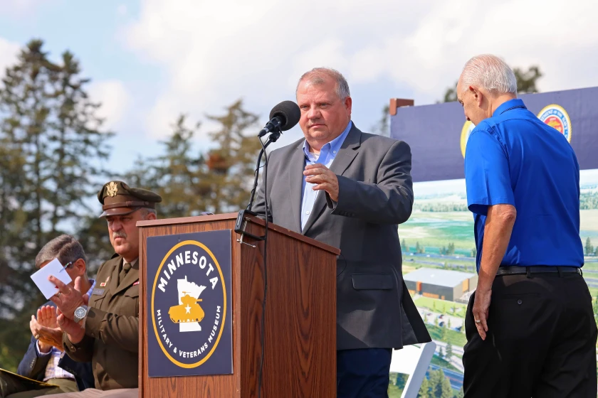 6/33: Representative Ron Kresha addresses the crowd Sunday, Sept. 17, 2023, for the Dedication and Ceremonial Groundbreaking for the Minnesota Military and Veterans Museum just outside Camp Ripley.