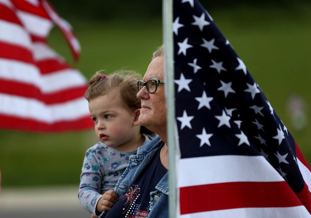 Dori Greene of Dodge Center, Minn., held her 1-year-old granddaughter, Amelia Wittmeier, during the dedication of the Minnesota State Vets Cemetery Preston Sunday, May 29, 2016, in Preston, MN.