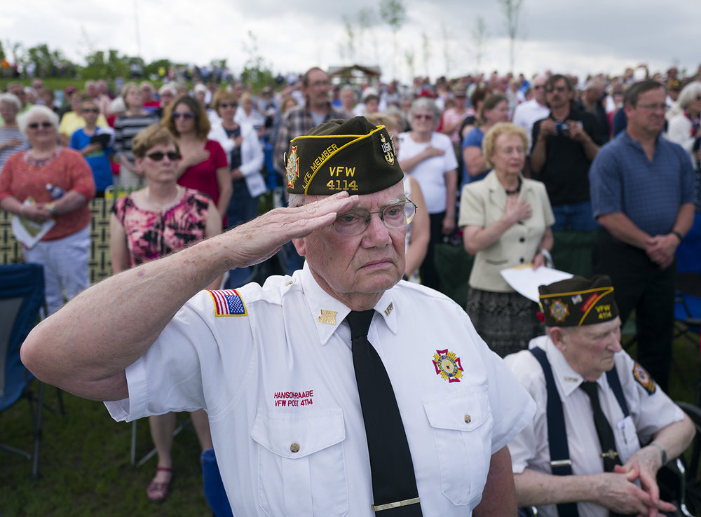 “We’re here today to dedicate this hallowed ground,” he told the crowd of veterans, young and old, some of whom came with their spouses, their children and their grandchildren. “It’s evident that this community is ready to accept the responsibility of eternal vigilance over this land. Many of us will spend our eternities here with our brothers in arms. But the next generation will come and the next. And keeping this place and its memory alive is our responsibility.”